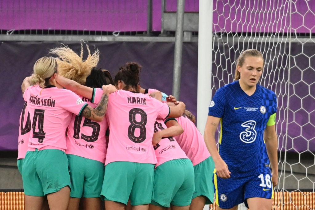 Appearing for the first time in the european women's showpiece, chelsea found themselves four goals behind to a rampant barcelona team after.